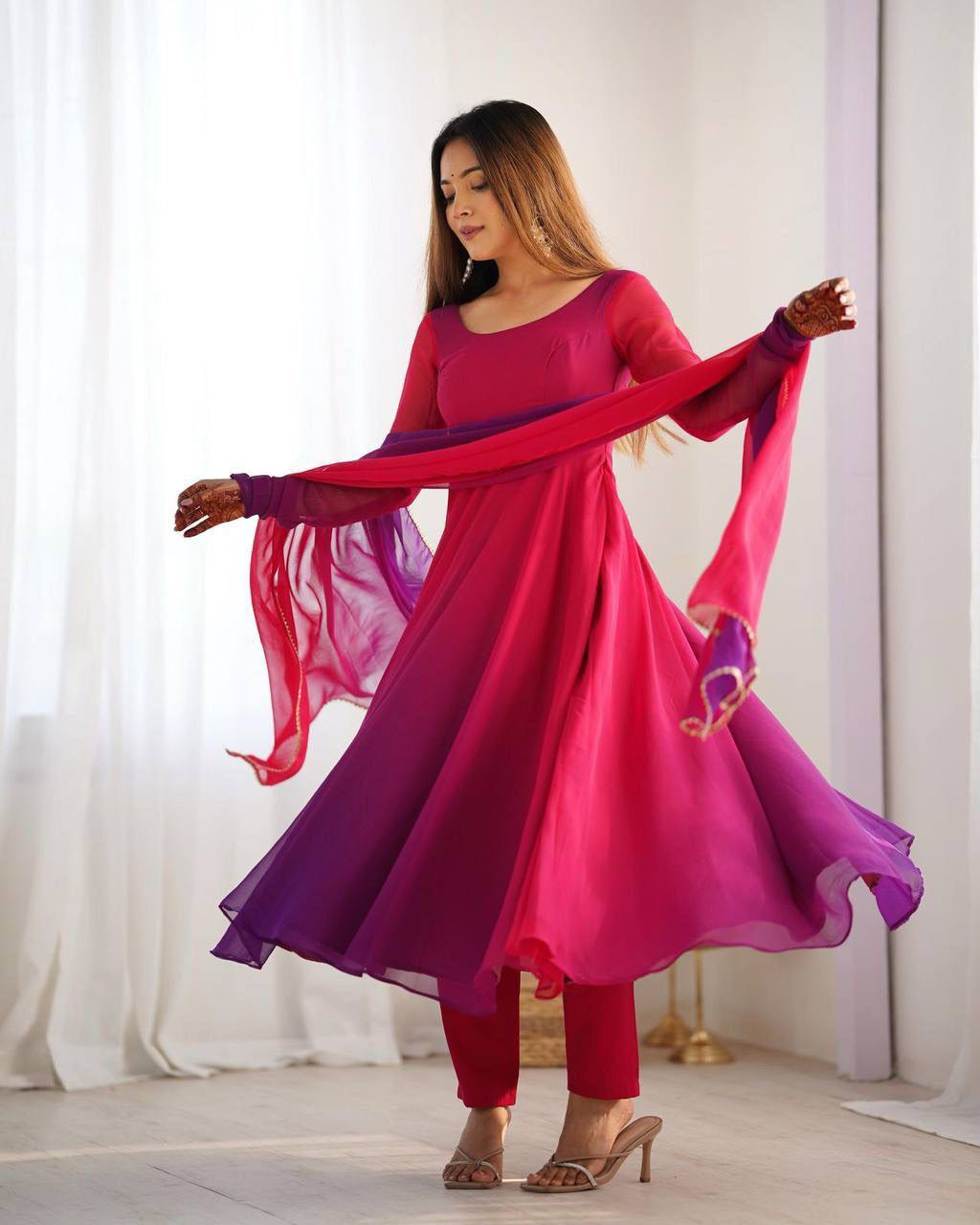 PURE SOFT FOX GEORGETTE MOST TRENDY PADDING FABRIC FULLY FLAIR ANARKALI,WITH DUPPTA SET,PANT READY TO WEAR